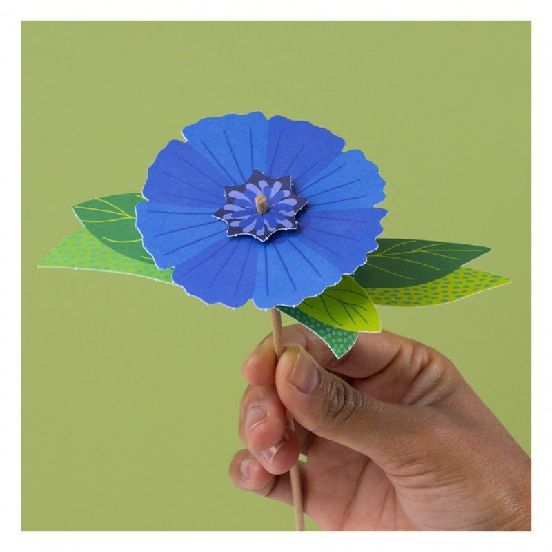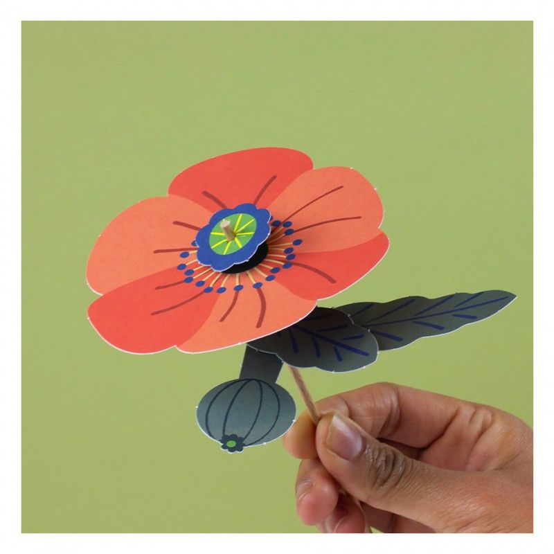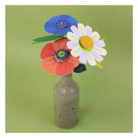 3 cardboard flowers to create: Poppy, Daisy, Cornflower.